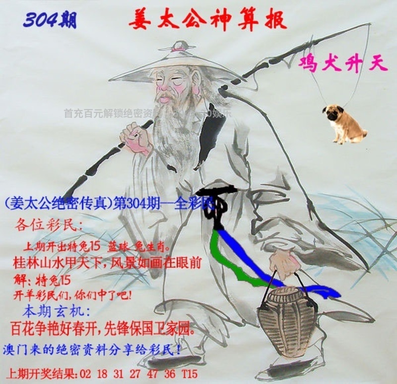 | 304期:济公特码诗 红花烂漫报春美,老牛耕地为农家。 解:牛猪鸡羊狗马。 活佛赠语:【寅亥六合】 解:虎猪 七肖:牛猪鸡羊狗马虎 |